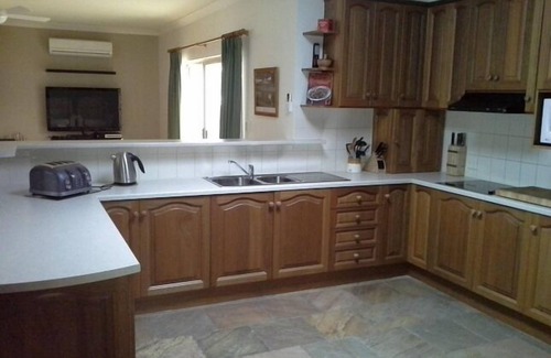 The kitchen is fully equipped, has many electrical appliances, including a dishwasher, microwave. wall oven, hot plates and fridge/freezer.