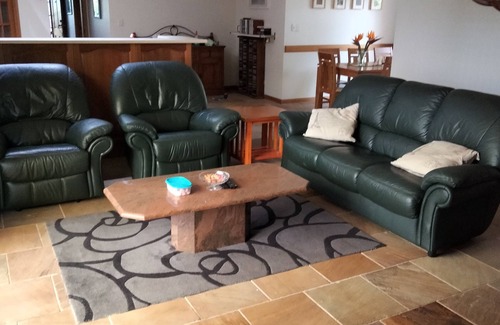 The family room has a lounge with recliner chairs, 50" flat screen TV, DVD & inputs for USB.