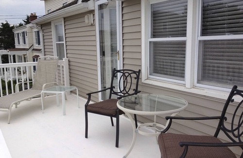 Relax on the deck of this 2nd floor oceanside duplex just steps from the beach. | House in Long Beach Township