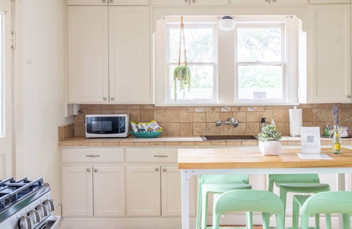 Enjoy a cozy experience at this centrally-located 1930 Bungalow. Our vintage home is small but mighty, with modern amenities, wonderful light quality, and comfortable decor. Sip coffee on the porch swing or cook-out in the back yard under a shady oak tree. Located just off the Town Square - you can walk to dining, shopping, coffee shops, and local museums. Convenient to all that Fayette County has to offer, including Round Top, the Painted Churches of Texas, Fayette Wine Trail, and more.