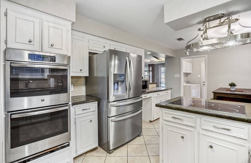 Enjoy entertainment on multiple smart TVs: a 55" in the living room, 60" in the master, 32" in each additional bedroom, and a 40" TV in the dining area. Located conveniently near the Medical Center and Galleria Mall, you’re perfectly positioned to explore Houston’s best attractions or simply relax at home.