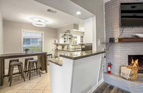 Relax & Play in Style, Parkside Pool Table + Game Retreat is located in Greater Fondren Southwest. Relax & Play in Style, Parkside Pool Table + Game Retreat provides accommodation, featuring Bedding/Linens, Fireplace/Heating, Barbecue/Outdoor Cooking, among other amenities. This House features Bedding/Linens, Fireplace/Heating, Barbecue/Outdoor Cooking, to make your stay a comfortable one.