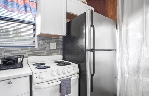 Enjoy comfort and space in this bright and roomy one-bedroom home, perfect for up to 4 guests. With one full bathroom and a large sofa bed, it’s ideal for couples, small families, or close friends. The open layout offers plenty of room to relax, featuring a fully equipped kitchen and a cozy living area. A washer and dryer are included for added convenience. Surrounded by peaceful greenery, this home is a relaxing Plant City getaway.