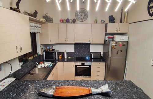 Villa Direti consists of 3 bedrooms (one of them is upstairs), 2 bathrooms (washbasin/shower/wc). A full equipped kitchen next to the dining area. Next is the living room which has plenty of space and 4 couches, with one of them being couch-double bed and opposite to that there is the fireplace which has super power fan connected, giving a fantastic sense of warm all over the place. Every room has its own A/C and Tv. Upstairs, the master bedroom, which has private shower/wc and two big verandas that cover 360 view. Very convinient in a windy day, you can always find a calm place to drink your coffee. Downstairs and outcide at the main guard, there is the barbecue which maybe its one of the best spots of the house. Next to the barbecue is the pool which is suitable for small children also, while having depths of one (1m) meter and (1,4m) one and a half meter also. Next to the pool is the grass area, ideal place for kids to run and play. Downstairs there is the garage that can easily fit 2 cars. Inside there you will find the gym area for starting a good and healthy day. Enjoy your staying!