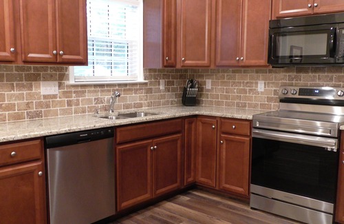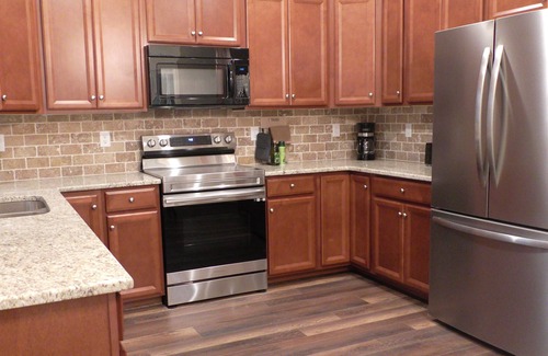 This home's design flows from room to room. Second floor is an open balony view to first floor. Our furnishings are all new and comfortable. Each bedroom has its own remote control ceiling fan, darkening wood faux blinds and smart TVs. Each room designed for comfort and relaxation. Kitchen fully stocked to create any gourmet meal, granite countertops, stainless steel appliances.