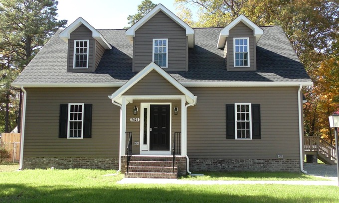 This home is new, completed construction October 2022, built just for VRBO guests and their pets (dogs). House furniture chosen for its softness and comfortableness. Located just off I-295 beltway around Richmond, Va. 20 mins from Westend of Richmond. For ultra relaxation, enjoy nice outdoor covered back porch. Neighborhood is super quiet, peaceful, safe at the end of a cul-de-sac. House has shared driveway, lg enough for several vehicles. And best of all, your dogs will love the large completely fenced in back yard!