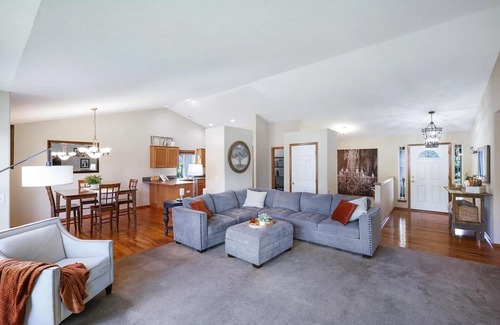 This 5-bedroom house is perfect for your escape to the Spokane area. With 2 king beds, 2 queen beds, 1 twin bed, and an option for a queen inflatable bed in the downstairs living space this pleasant and welcoming property can comfortably accommodate a large group of guests. You'll find everything you need for a phenomenal stay, including a large entertaining living space, a covered patio, and a fenced yard for games or just relaxing under the stars. This home is located in a quiet neighborhood and just 3 blocks from Bidwell Park and the North Side Family Aquatics Facility. Whether you're planning a long or short stay, our place is equipped to make your time one to remember. So pack your bags and get ready for a delightful getaway at our Colbert retreat.