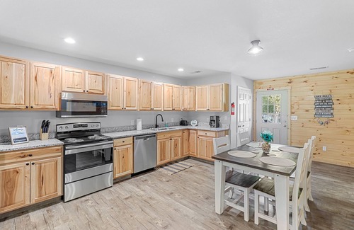 Come relax at this stunning lodge that has everything you need for a relaxing get away. Featuring 2 bedrooms, one with a king bed and one with a queen bed, both with 40-inch smart tv's, 1 bath, a large kitchen / dining room, a living room with a 55-inch smart tv & a laundry room. Outside you will find yourself in a camp like setting, with a camp grill and picnic table. Take a short stroll to Watts Bar Lake and enjoy the beautiful scenery. Many restaurants nearby to enjoy. Located between Knoxville and Chattanooga.