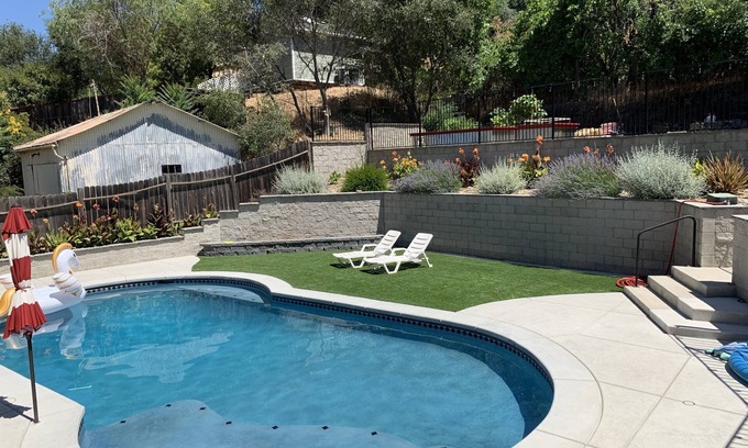 Welcome to our home, located in beautiful Amador County gold country! We have a charming 2 bedroom/ 2 bathroom house that was once an original gold mining cabin, walking distance to the well-preserved historic downtown. We also have a detached outbuilding that serves as an office and has a 1/2 bath accessible from the pool area. The fully furnished indoor and outdoor living spaces are perfect for entertainment or relaxation. Enjoy the large recently remodeled backyard complete with swimming pool, as well as the highest speed internet available to easily handle your virtual and distance learning requirements. Between bookings, the home will be thoroughly cleaned to protect our guests from COVID-19.
