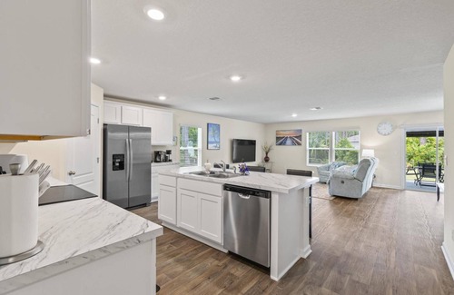 This is a NEW listing! Come enjoy this "R" Section, vacation rental home in sunny Palm Coast, Florida. Just a few minute's drive to just about everything in and around Palm Coast. Dip your toes in the sand at the beach, which is only a 8 mile drive. Plenty of space for the whole family to spread out with this spacious floor plan, four-bedroom, two-bathroom newly built home and stocked with all of the items you will need for your stay such as linens and towels, dishes, cookware, grill, and beach towels.