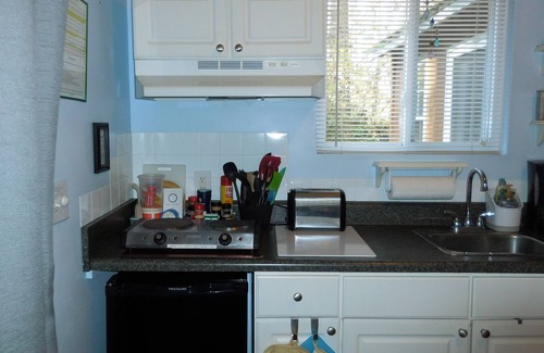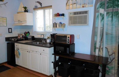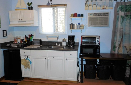 Charming cottage in a private setting near the historic churches and plantations of Edisto Island. Located in the center of Edisto Island, only a short drive (5 miles) to the beachfront of the Atlantic Ocean. Sea Island Cabana sits nestled under beautiful pines and hardwood trees with a view of a freshwater pond. The Cabana has a tasteful tropical/nautical decor with a beautiful king bed, a cozy love seat ,dining table and chairs , kitchenette, large bathroom, and a separate screened bamboo Tiki Hut. This is not your typical beach cottage. This cottage is very nice and very clean with many personal touches. Just pack your suitcase, come, and relax. You'll find everything you need from pots & pans, dishes, and even salt & pepper! LINENS ARE NOT PROVIDED ( you will provide king bed sheets, bath towels)