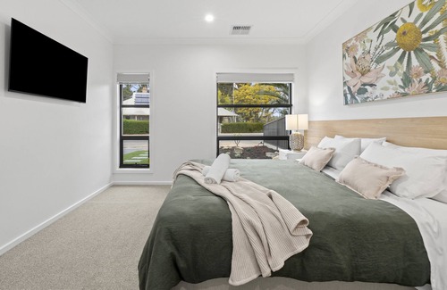 RENMARK RIVER VILLAS - Four holiday villas located next to one another. Two were built in 2015 and have 3 bedrooms, 2 bathrooms and can accommodate up to 8 people in each. The two built in 2023 have 4 bedrooms, 2.5 bathrooms and can accommodate up to 10 people in each. Situated only 40 metres from the river and owner-operated houseboat accommodation Boats and Bedzzz, all only a 5 min stroll to the town centre. Fully self-contained, reverse cycle a/c and undercover alfresco area with bbq, overlooking the private rear yard. Villas 50, 52 and 54 each have their own private inground pool and if catering for a large group between villas, we provide easy gate access between the villas. Secure parking for 2 cars and/or boat in some of the villas.