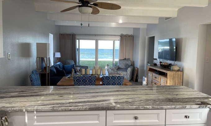 RENOVATED 1st FLOOR DIRECT OCEANFRONT CONDO - Just steps from the beach and pool is located in New Smyrna Beach. RENOVATED 1st FLOOR DIRECT OCEANFRONT CONDO - Just steps from the beach and pool provides accommodation, featuring Air Conditioner, Fireplace/Heating, Child Friendly, among other amenities. This Condo features Air Conditioner, Fireplace/Heating, Child Friendly, to make your stay a comfortable one.