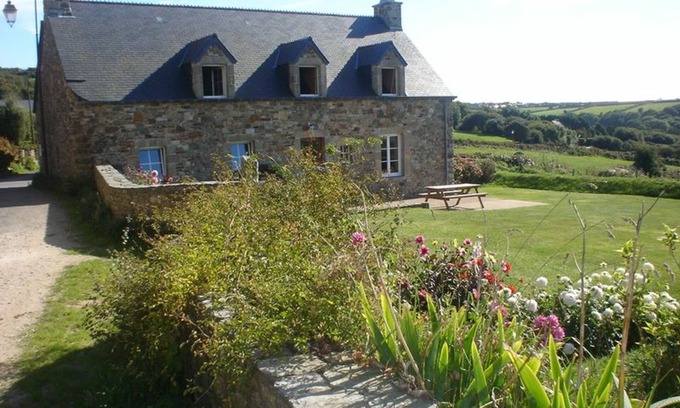 Detached house. Ground floor: Living room. Kitchenette. Bathroom. Separate toilet. Upstairs: Bedroom 1 (1 queen-size bed). Bedroom 2 (1 double bed). Bedroom 3 (3 single beds). Shower room with toilet. Fireplace. TV. Telephone. DVD player. CD player. Washing machine. Dishwasher. Wi-Fi. Sheets and linens not provided. Cleaning service at an additional cost. Central heating included. All utilities included. Private enclosed grounds. Terrace. Garden furniture. Barbecue. Swing set. Fully renovated character house, located along the GR (Greater Long Distance Hiking Trail) in an exceptional and peaceful setting with sea views. You can admire the island of Alderney and the magnificent sunsets.