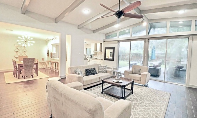 Welcome to The New Grove by Luxurway! This spacious, fully renovated and fully furnished private home is one story/level with 4 bedroom and 3 baths. Located near Bellaire, NRG and the Texas Medical Center (MD Anderson). There are grocery stores and restaurants within a 5 minute drive. Featuring a fully-equipped gourmet kitchen, washer/dryer, and fast WiFi. There's a fully fenced backyard area and free secure parking. Ask us for discounted monthly rates for extended stays.