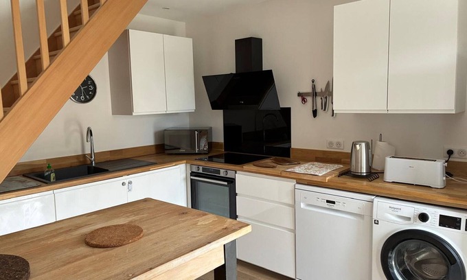 Come and enjoy this fully renovated apartment, located in Ondres, just 10 minutes from the beach. With a surface area of 52 m², the accommodation can accommodate up to 4 people and is divided into two levels: upstairs, a bedroom with a double bed (140x190 cm) and a sofa bed, there is also a bathroom with a shower and a toilet. On the ground floor, a modern and fully equipped kitchen with a Nespresso coffee maker, kettle, dishwasher, and washing machine. Outside, a small private garden will allow you to enjoy moments of relaxation or outdoor meals. The apartment is located in a quiet environment, close to beaches, cycle paths, and amenities. It is ideal for a stay as a couple, family, or friends. End-of-stay cleaning is included in the rental price. Free Wi-Fi access. To be paid before your arrival: tourist tax and accommodation deposit by credit card only. Optional services to be arranged prior to arrival: