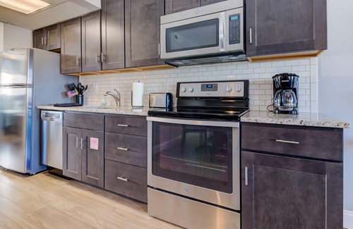Our Condo includes one bedroom with two new queen beds, a great ocean view, and flat-panel TVs with digital cable. The bathroom has a full tub with shower, and the kitchen is complete with a range, microwave, full-size refrigerator, and a full complement of cooking utensils. The dining area includes comfortable seating for four, and the living area has a sofa, chairs, and another TV with DVD player. Xfinity high-speed internet included as well.