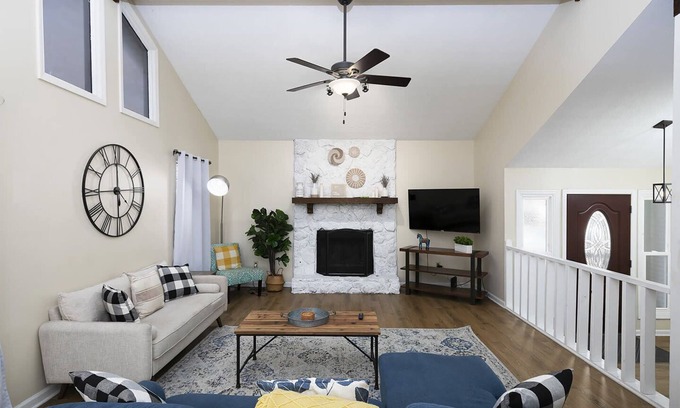 This home will comfortably accommodate up to 8 guests and provides ample parking on a long driveway and a one-car garage. Inside, the kitchen is fully equipped for cooking with complimentary coffee and tea. Mattresses and bedding sets are highly rated on Amazon. The sectional sofa in the living room can be expanded into a full-size bed if needed. TWO 55” 4K Roku TV for you to relax and watch your favorite shows!The place is conveniently located near I-20 and close to everything that Atlanta offers: