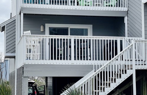Under the home you will find an outdoor shower to rinse off after a day at the beach, a deck with table and chairs and a closet filled with beach chairs, an umbrella, and toys that you are welcome to use during your stay!