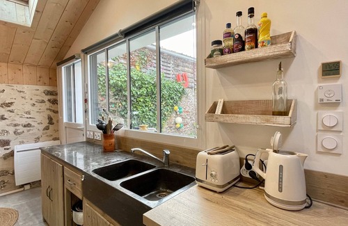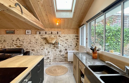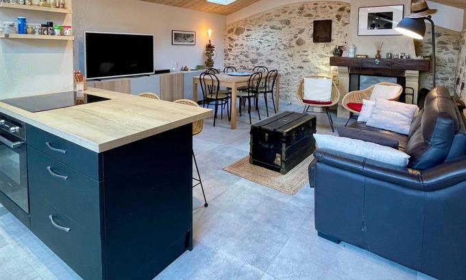 In the heart of the village of Brem-sur-Mer, 100m from shops (bakery, tobacconist/newsagent, etc.), this fully renovated house will charm you with its unique character and decor inspired by an artist's loft, offering a space that is both modern and welcoming.