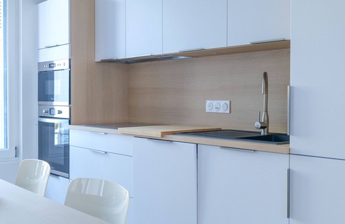 Open and fully equipped kitchen: kettle, oven, microwave, microwave, dishwasher, refrigerator, freezer, X3 induction hob, coffee maker (Krups)...