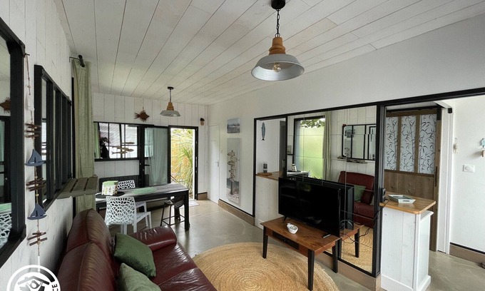 Renovated house 1 km from the Grande Plage des Sables d'Olonne and its embankment, and the town center (shops, restaurants, etc.). Ideal location to put your suitcases and do everything on foot. You can also enjoy cycle paths, walks in the forest... The single-storey gîte consists of an entrance/kitchen, a living room/living room (1 80x200 bed), a bedroom (1 bed 160x200), a bathroom and a separate toilet. Outside, you will benefit from a fully enclosed private space with garden furniture, deckchairs and barbecue. Common courtyard available to store bicycles on request from the owners. Possibility of parking the car in front of the gîte or in the free car park 100m away. A second Gîtes de France approved accommodation on site (Ref H85G027520).