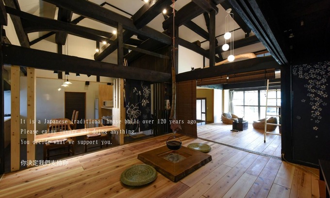 There are also many hot springs nearby so you can enjoy them And the bathroom of the facility is a total cypress bath so you can take a relaxing bath / The interior is modern Japanese having been renovated from an old house that is over 130 years old Although there are some old parts due to the age of the building you can once again feel the beauty of Japan with the hearth and cypress bath