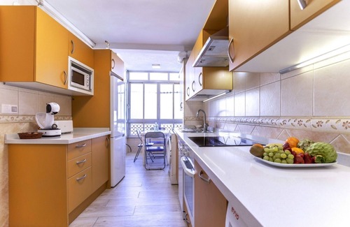 Cleaning cost not included in the reservation. Price 80 euros. Only for over 25s or families. Apartment in front of the beach of the Malagueta beach in Málaga city. Malagueta area is from 5 minutes walking to the city center. Free Wifi. Next to “Muelleuno” , a lovely place with shopping, bars, restauranttes; The apartment has 4 big bedrooms, capacity for 10 people, 2 bathrooms (one with shower and one with bathtub). Front view to the beach. You can see the beach from all rooms. It has hight Wifi, and Smart TV, and international chennel TV. Air conditioning cold / heat centralized in the whole house (less in the kitchen), and ceiling fans in all the rooms. 4 Single beds of 1.05 cm, 1 big bed and 2 big sofa bed. Kitchen full equipped with all the utensils to inhabit it. Private garage, 12 euros / day (you need to book). And baby cot 30 euros/stayYou could take a bus or taxi next to the aparment