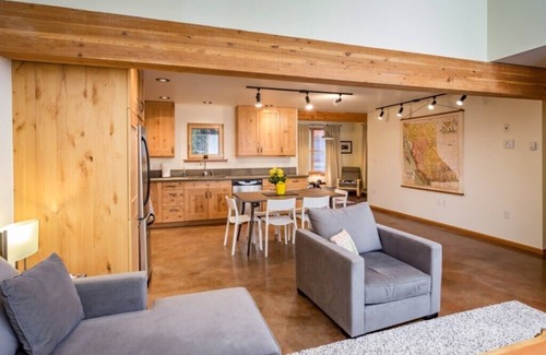 The Mountain Project #7 has 3 bedrooms and 2.5 bathrooms plus garage with ski-tuning / work bench complete with a fully furnished and stocked kitchen, designer furniture and high end linens/towels. On-demand hot water and in-floor radiant heat, LED lighting plus industrial light fixtures, concrete flooring and concrete counter tops and metal accent siding make up these modern architecture homes.