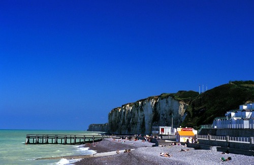 Only 900 m from the sea with cliffs and pebble beach! The holiday complex is located in a 3-hectare park and offers plenty of variety for the whole family. The communal indoor pool also ensures bathing fun on cooler days. While the children play with their peers in the children's club during the regional school holidays, you can relax in the steam bath or work out in the fitness room or on the sports field. The total of 72 detached and terraced houses are bright and modern and offer an ideal retreat. The small charming village of Veules-les-Roses is located on the Alabaster Coast and is one of the most beautiful places in Normandy. Thatched half-timbered houses, water mills on the Veules, the smallest river in France, and small locks and stone houses made of flint characterize the townscape. Explore the area on foot or by bike.