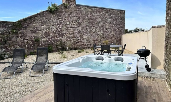 Accommodation: The agency offers this apartment renovated in 2021, which can accommodate up to four travellers. In the heart of the centre-Bourg of the commune of Fréhel, you can admire the most beautiful panoramas of the region and relax after long walks on the GR 34, thanks to the Spa 4 people (heated all year round).The apartment offers:- A large bright living room with living area with sofa, armchairs, TV and Wi-Fi access; - A fully equipped kitchen with: large dining table for 8 people, sink, induction plates, hood, oven, microwave, fridge-freezer, kettle, toaster, coffee maker filter, citrus press as well as multiple accessories (sladder, colander, stoves, kitchen utensils and cutlery); - One bedroom with a standard double bed (140x190cm); - A second bedroom with a classic double bed (140x190cm); - A bathroom with Italian shower, sink and mirror; - A separate toilet; The outdoor space (fully enclosed) is fully equipped with outdoor dining table for 6 people, sun loungers and charcoal barbecue.The outdoor Spa is accessible all year round for your entire stay in the accommodation.- Charges included: bed linen, linen (towels and towels)- Wi-Fi access (subject to 4G network coverage)Services offered as an option and by reservation :End of stay cleaning: 72€ (subject to the internal rules of the agency).An autonomous arrival is expected after 6 p.m. and during the closing days of the agency. Key boxes are available outside the agency.