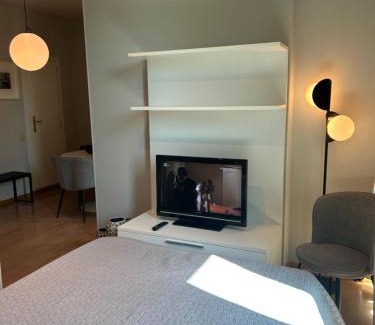 BathroomTowels, Shampoo, Toilet, Free toiletries, Body soap, Toilet paper, Private bathroom, Hairdryer, Bidet, ShowerMedia & TechnologyTV, Flat-screen TVGeneralHardwood or parquet floors, Air conditioning, Heating, Private entrance, Trash cans, Ironing facilities, Key access, IronKitchenCoffee machine, Wine glasses, Kitchenware, Kitchenette, High chair, Stovetop, Oven, Refrigerator, Washing machine, Microwave, Dining tableViewCity view, ViewBedroomWardrobe or closet, Linens, Childrens' cribsAccessibilityUpper floors accessible by elevator, Accessible by elevatorBuilding CharacteristicsPrivate apartment in building, DetachedRoom AmenitiesClothes rack, Non-feather pillow, Drying rack for clothing, Socket near the bed |