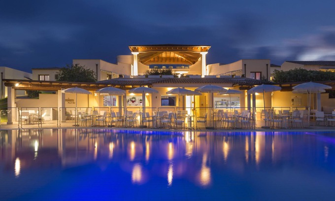 Sand beach and a fitness center, near Cala Brandinchi Beach