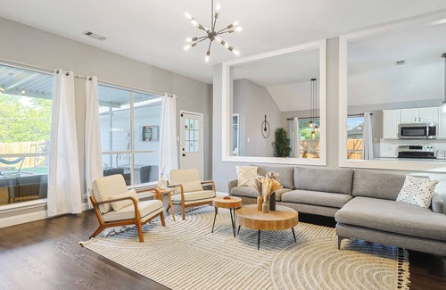 As you step outside, you'll be greeted by your private backyard oasis. Take a refreshing dip in the sparkling pool to beat the Texas heat or unwind in the indulgent hot tub, perfect for soothing tired muscles after a day of exploration.