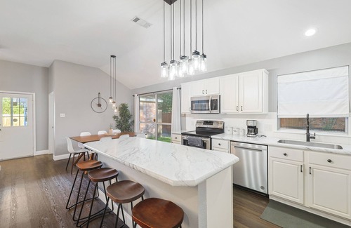 Welcome to our luxurious 5-bedroom, 2-bathroom retreat with a pool and hot tub in the charming city of Mesquite, Texas. This spacious and stylish house is ideal for large groups and families seeking a memorable stay filled with comfort, entertainment, and relaxation. Whether you're lounging by the pool, enjoying the hot tub, or hosting a festive gathering in the spacious living areas, this home offers the perfect blend of entertainment and relaxation. Make this stay truly special with unforgettable memories