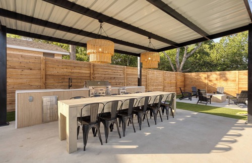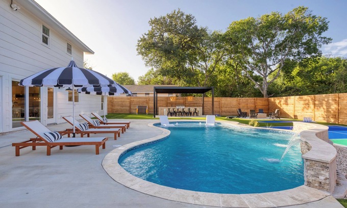 Kick back and relax in this calm, stylish space where you can relax by the pool or enjoy many of the outdoor games in a backyard surrounded by trees. The pickleball court invites you to a game and the private yard offers you privacy and quietness.
