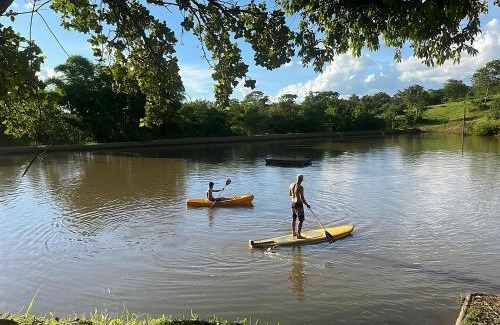 Providing a garden, Respire Fundo A Natureza te Espera - Estância do Caminho do Meio features accommodations in Caldazinha. This property offers access to a balcony, free private parking, and free Wifi. Aruana Park is 19 miles from the vacation home and Oscar Niemeyer Cultural Center is 21 miles away. The spacious vacation home is composed of 2 bedrooms, a living room with dining area, a fully equipped kitchen, and 2 bathrooms. Towels and bed linen are provided in the vacation home. For added privacy, the accommodation features a private entrance. For guests with children, the vacation home provides both an indoor and outdoor play area. If you'd like to discover the area, fishing, canoeing, and hiking are possible in the surroundings. Carmo Bernardes Park is 21 miles from Respire Fundo A Natureza te Espera - Estância do Caminho do Meio, while Goiania Bus Station is 23 miles away. Santa Genoveva/Goiania Airport is 22 miles from the property.