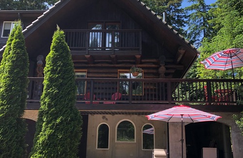 Traditional log cabin is over 200 feet away from host house. The overall property sits on over 5 acres, much of which can be explored by guests. Large cedar, madronas and fir trees surround and encompass the property. Nature abounds with various birds and wildlife in the surrounding woods. A true escape to nature....quiet, solitude and relaxation.