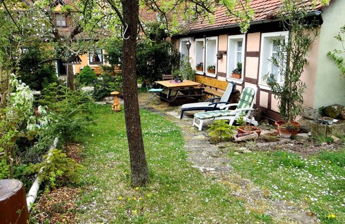 Restored farmhouse in the center of Schweinsdorf is located in Neusitz. Restored farmhouse in the center of Schweinsdorf provides accommodation, featuring Balcony/Terrace, Security/Safety, Bedding/Linens, among other amenities. This Apartment features Balcony/Terrace, Security/Safety, Bedding/Linens, to make your stay a comfortable one.