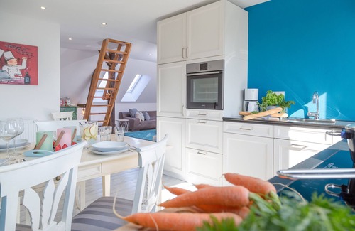 Enjoy absolute peace and idyll in this lovingly renovated rest yard in the immediate vicinity of the North Sea dike and Wadden Sea. With a view of the islands of Sylt, Föhr and Amrum, surrounded by rapeseed fields and meadows. The animal residents of the farm, 2 ponies, 2 dogs (Magyar Vizslar) and 4 cats are happy about visitors and petting. The bright and sunny 3-room apartment on the first floor for max. 4 people offers everything you need for a relaxing holiday. In 2016/2017, it was renovated very extensively and also meets the desire for modern comfort