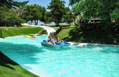 Stay cool on the 100-foot water slide, kayak in our beautiful lagoon, or relax with family and friends in our pavilion. Then relax in our luxury farmhouse and catch the game in our media room.