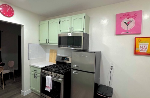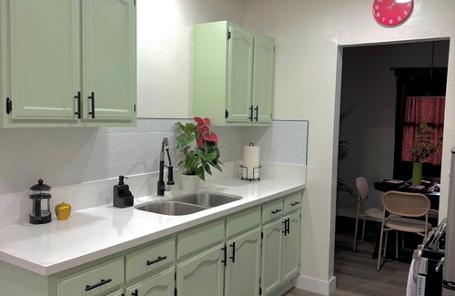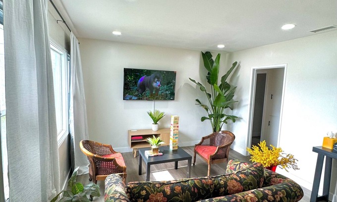 This retro modern 3 bed, 2 bath home in Fontana is your ideal spot! Pet-friendly and perfect for families, friends, or solo travelers, this stylish haven offers a spacious backyard for relaxation and fun. Conveniently located near shopping centers, restaurants, the airport, Ontario Mills outlet, Toyota Arena, & NOS Center & much more. Enjoy many amenities . There is also a friendly dog that will make your stay enjoyable! All guests must state their reason for booking.