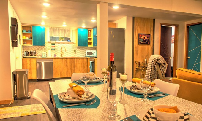 This unique place has a style all its own. One flight of stairs takes you back to the fun of mid-century modern decor in this basement unit. Fully renovated in 2024. Highlights include tiled walk-in shower, custom kitchen, open concept living and dining. Utility room with folding station, washer and dryer. You may occasionally hear footsteps from upstairs guests. Beautiful grounds surround our home. Free wi-fi with excellent upload and download speeds. A few short blocks from Tumwater HS! Minutes from I-5. SeaTac airport 1 hr away. 1 hr 25 min: east to Paradise on Mt. Rainier or west to the beach at Ocean Shores! We look forward to hosting you at our place.