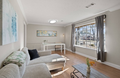 Nestled in Plano, this 3-bedroom, 2-bathroom vacation home brings it all within your reach. Fans of nature and the outdoors will love being 17 minutes by car from Lake Ray Hubbard and 17 minutes from Addison Circle Park. With the property's convenient onsite parking, you'll be ready to make the quick 4-minute drive to Oak Point Park & Nature Preserve or the 3-minute drive to ArtCentre of Plano.