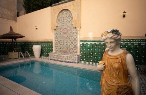 Riad Fes Ziyat & Spa provides wellness packages and a steam room, as well as air-conditioned accommodations in Fez, 1.6 miles from Royal Palace Fes. Featuring a shared lounge, the property is located within a 9-minute walk of Batha Square. The riad features an infinity pool with a pool bar, as well as a spa facilities and a 24-hour front desk. Rooms include a kettle, a flat-screen TV, a safety deposit box, and free Wifi, while selected rooms also boast a balcony and some have pool views. At the riad, units include a private bathroom with a hair dryer and free toiletries. Guests at the riad can enjoy a continental breakfast, and breakfast in the room is also available. Guests are welcome to eat at the on-site family-friendly restaurant, which is open for dinner and lunch. Sightseeing tours are available in the neighborhood. Guests can also relax in the garden or on the sun terrace. Popular points of interest near Riad Fes Ziyat & Spa include Medersa Bouanania, Bab Bou Jeloud Fes, and Karaouiyne. Fès–Saïs Airport is 11 miles from the property.