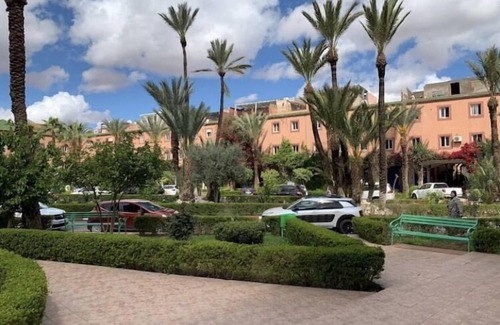 Le riad traditionnel se compose Des pièces de vie, salons et chambres sont réparties tout autour du patio jardin plus piscine dans une résidence bien sécurisée