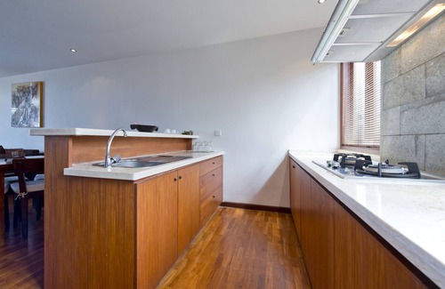 Air-conditioned // Living & Dining // Comfortable sofa // TV // DVD // Laptop table // Dining table // Kitchen // Fridge/Freezer // Water dispenser // Water kettle // Gas stove // Pots & pans // Plates & cutlery // Bathroom // Shower // Toiletries // Hairdryer // Bedrooms // Kingsize bed // Furnished Balcony // Large wardrobe with hangers // Dressing table // Laundry basket // Carpeted //