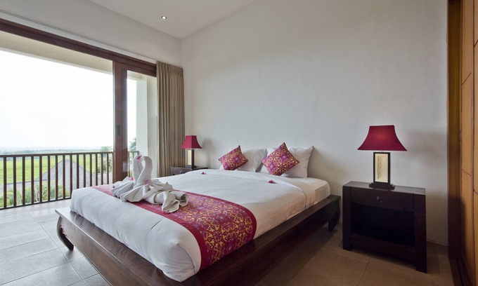 Private access // Rice field view // King size beds // Equipped kitchen // Air-conditioning in bedrooms // Furnished balcony // TV // DVD player // Free WiFi // Steps away to the giant infinity pool