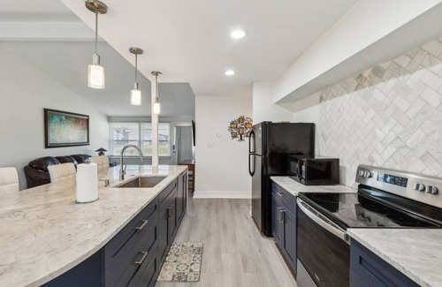 Step directly into a spacious living room & kitchen that are great for entertaining. We've provided pots, pans, silverware, cups & cooking utensils should you decide to stay in for the night! 3 bedrooms provided ample sleeping space for you & your guests. Please feel free to enjoy our beautiful backyard!