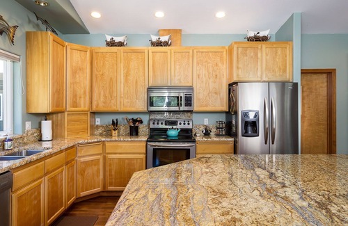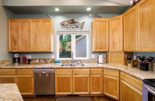 Discover a dramatic and wonderfully spacious open floor plan, stunning interior river views, 3 main level bedrooms and cozy sleeping loft. Naturally inspired finishes include slab granite, slate, river rock, hardwood flooring and rich cedar woodwork. The master has a king bed with ensuite bathroom that has a large stone shower. The other bedrooms have a king bed and a queen respectfully and another full bathroom. Upstairs in the open loft you will find two additional twin beds.